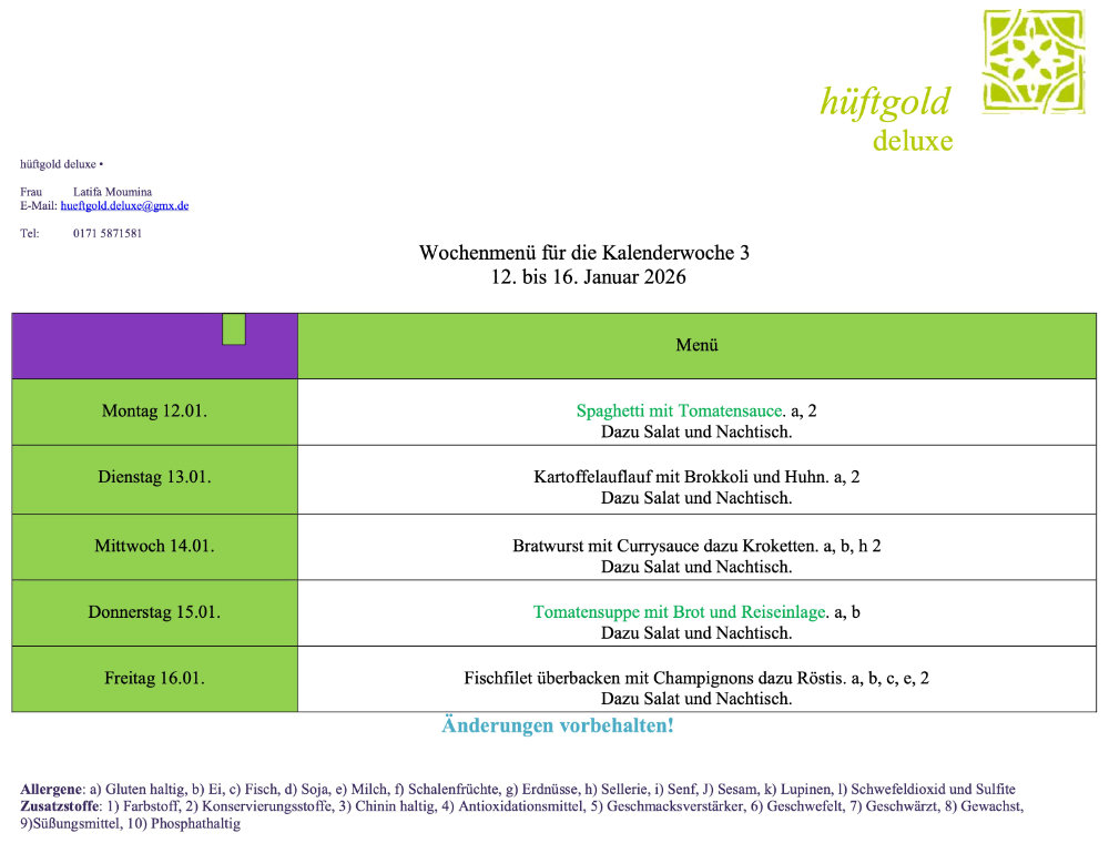 Unser Küchenteam legt großen Wert auf eine sorgfältige Zubereitung der Mahlzeiten. Mit hochwertigen Zutaten und viel Engagement werden täglich frische und abwechslungsreiche Gerichte angeboten, die nicht nur gut schmecken, sondern auch nahrhaft sind.